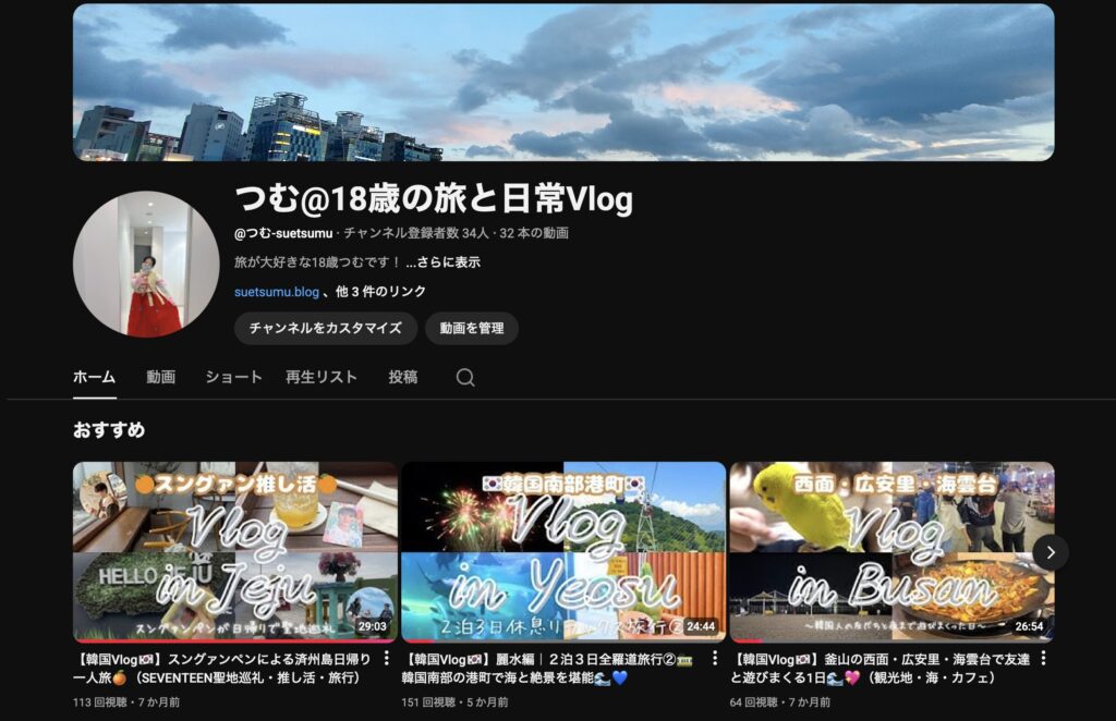 Youtube(末摘@18歳の旅と日常Vlog)▶日常・観光Vlog