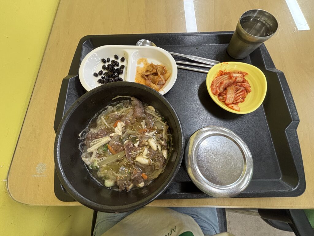 私のおすすめメニュー↑牛肉プルコギ鍋+ご飯+おかず5500ウォン